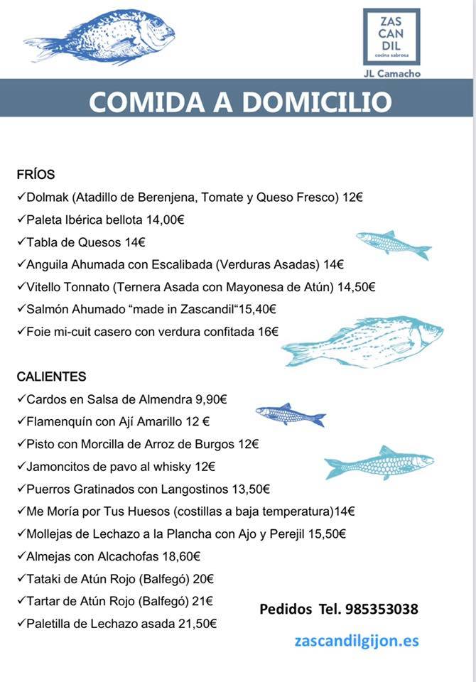 Ya puedes encargar tu comida a domicilio de nuestra carta especial "confinamiento". Hemos seleccionado una propuesta variada de platos para que los puedas degustar en casa. Sin coste adicional. Pedido mínimo 30 €. Y si quieres algo especial, como un pescadín o un arroz, te lo preparamos. Pedidos en el teléfono: 985353038