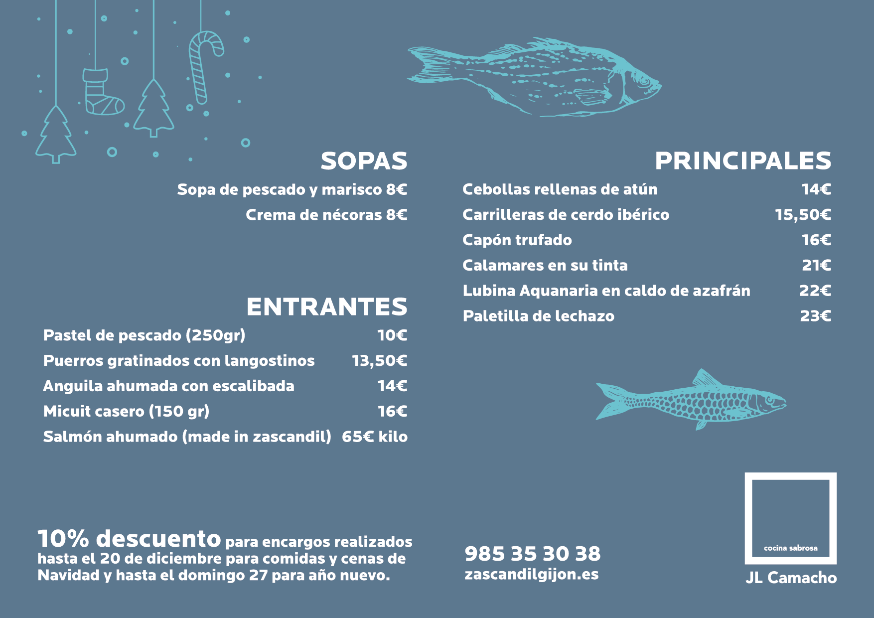 Las Navidades más caseras con la cocina sabrosa de Zascandil. Un año más nos encargamos de las viandas que vais a disfrutar en casa. Hemos diseñado una selección de platos para ser los auténticos protagonistas de la mesa en Navidad. Podéis disfrutar de un 10% de descuento por hacer vuestros encargos hasta el día 20 para comidas y cenas de Navidad y hasta el 27 de diciembre para año nuevo. No dejéis pasar la oportunidad de saborear la cocina sabrosa en casa esta Navidad.