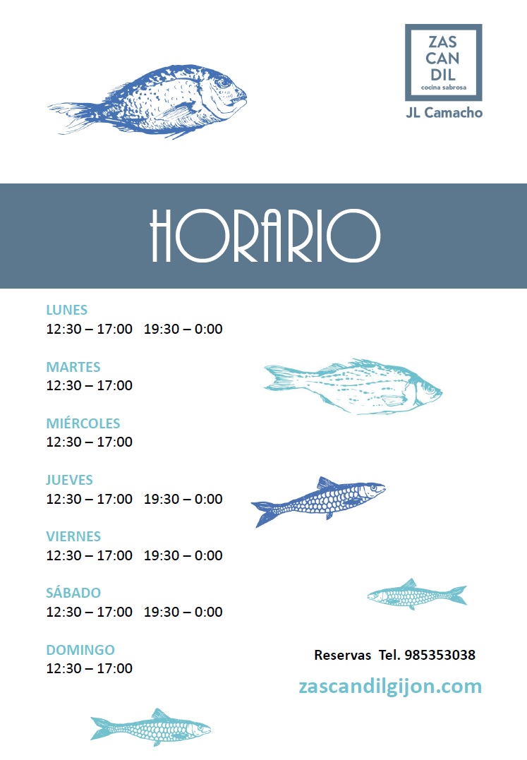 Descansaremos los domingos, martes y miércoles noche, el resto de la semana estaremos al pie del cañón para recibiros en Zascandil, con nuevos productos de temporada pero siempre con la mejor calidad.